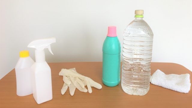 - step.1 - ハイターをスプレーボトルに移し、ヤスデが出現する可能性のある場所を中心に吹きかける(スプレーボトルは100均のものでOK!)
